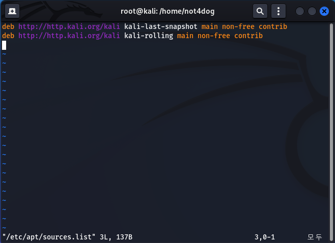 vi 편집기 상태로 들어감
