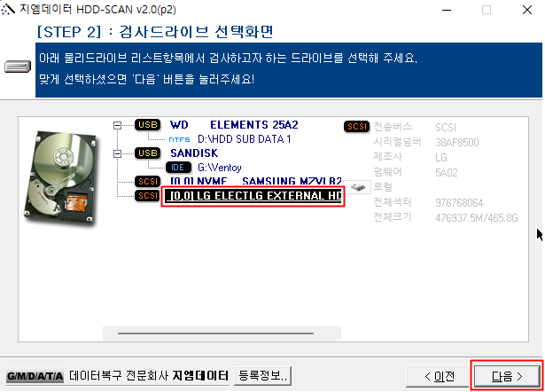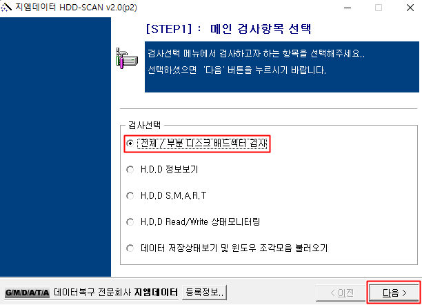 원하는 것을 선택하여 '다음'을 클릭한다.