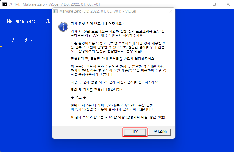 이 화면에서 상단 '시작' 버튼을 눌러 가상머신을 구동한다.
