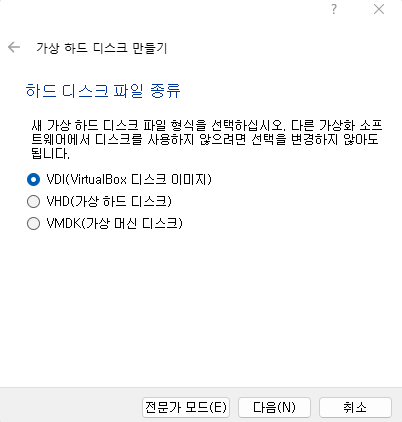 4-1. 하드 디스크 파일의 종류는 원하는 종류로 선택한다.