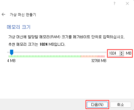 보통 2GB (2048MB) 이상은 설정해 주어야 쾌적하게 사용할 수 있다.